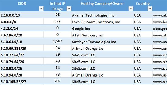 Top Level Host Names (Websites IP Reverse DNS) 291,727 hosts