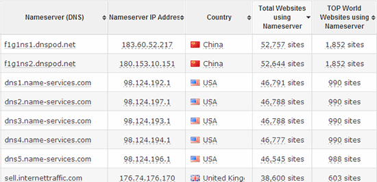 DNS Domain Name Servers for Websites 832,852 DNS records